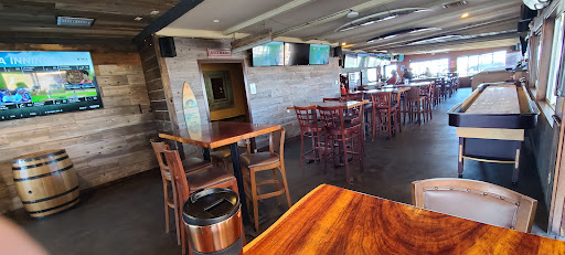 Great sports bar right across from the beach. Beautiful sunset views, plenty of tvs to catch the games, and a good selection of beers on tap. There is also a really nice back patio that overlooks the lagoon with a big screen tv if youd rather sit outside. The food is pretty good for a sports bar. Ive ordered tasty nachos, chicken tenders, and flatbreads and all have been enjoyable. The only downside is that parking can be a little difficult as there is a very small lot that is frequently full. They have an all night happy hour on Monday with $3 off flatbreads and apps and $5 margaritas and beers. Go check it out!