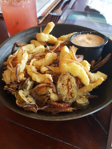 Excellent and giant portions of chicken fingers and tater tots. Bacon chicken lollipops are spicy yum! Good healthy options as well. Mixed greens Chefs Salad and fish tacos. One important thing to know (that my son remembered a little too late this time