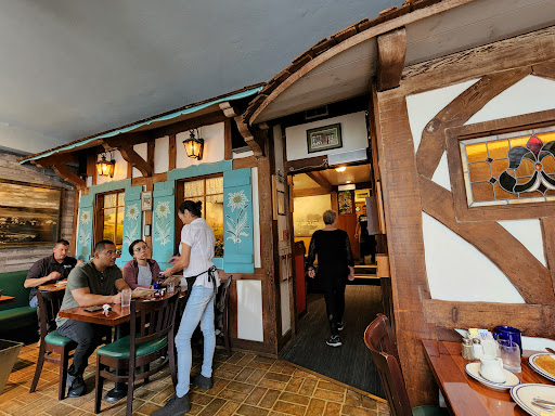 Delicious spot for brunch. Quaint interior that is a mix of the inside/outside of a Swiss cottage.