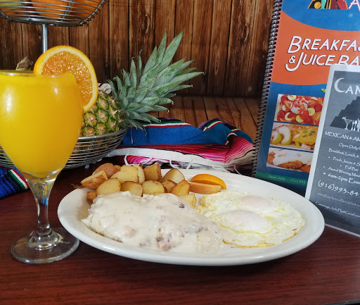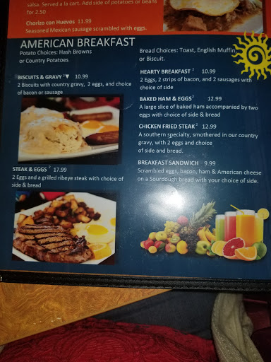 Juice bar concoctions superb. Nice that you can get smaller $3.99 selections of drinks. Typical breakfast menu with lots of Mexican food oprions.