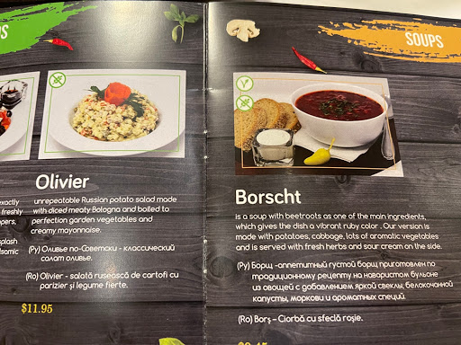 Just tried the borsch soup and chicken dumplings. I hate beets but the borsch surprised me... No beet taste (despite being bright red) and excellent! Dumplings were great, will return to try the rest of the menu. :)