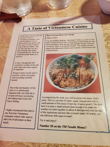 Really good pho (rice noodle soup). Othe dis hes areally good too. Friendly service and not to expensive. Seats in booths were worn out but have recently been redone.