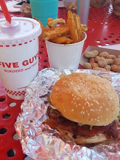 The Bacon Cheese Burger with fries and a large coke was really good. My Coworker never had it and this was his first time, he had a blast....burgers here are great and yes they are extremely expensive but you pay for what you get. Thank you Five Guys for opening here in Carson, CA Harry Irvine