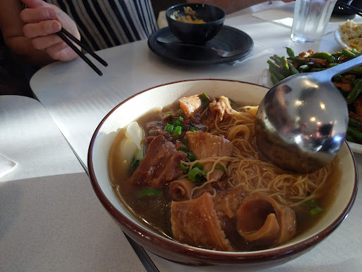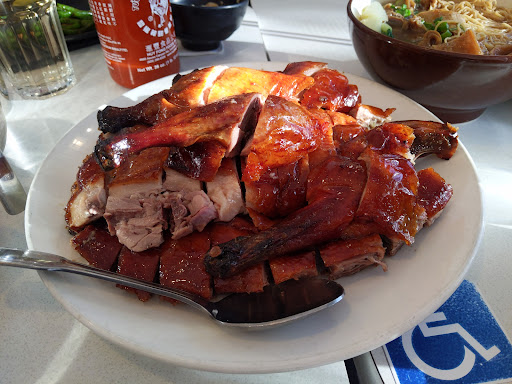 Surprising find in this neighborhood. On a Sunday early afternoon, this place was packed. This place is pretty good and reasonably priced. Although one of their noodles plates was too salty (we sent it back and the waitress apologized, didnt give us any dirty looks and had the chef make us a new plate). We also ordered the shrimp and the eggs chow fun which was tasty and had ample shrimp. The oyster sauce gai-lan was plentiful and their chicken, tofu and salty fish clay pot was delicious. Their menu and food are typical of a Chinese type BBQ restaurant. Their ducks and BBQ items look appetizing; something for next time