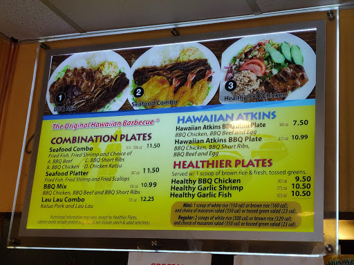 Alright Basic Hawaiian barbeque food. My Favorite is the BBQ mix. A lot of chicken and ribs w/ white rice and pasta salad. The wait is okay, the inside is kinda annoying after being there for awhile.