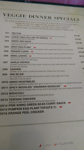 We get it delivered and are never disappointed. The pad thai, tom khai chicken soup. beef broccoli and chicken satay are all excellent. For meatless I recommend the fried toful Very firm and yummy.