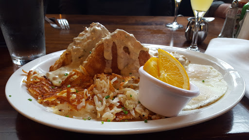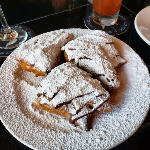 We came for brunch and it was my first time here. I had the mushroom scramble and also sampled the beignet. Both were very good. Server was nice, but brought no sugar or anything to stir the coffee. Also never came to offer any coffee refills. Another strange thing was theres no high chairs for kids. Omelettes are expensive quick if you add many toppings. A bacon, cheese, avocado, mushroom omelette would be about $15. I will try happy hour sometime as it looks more catered to that.