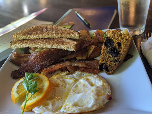 Bit pricey for me, but the food is good. Portions are big. Location is large and can fit larger groups of people without overrunning the business. Coffee is from Cal Java, which is not my favorite but for no particular reason than personal preference.
