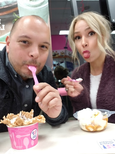 By far the dirtiest Baskin Robbins EVER. Dont ever go here. I waited patiently for about 15 mins and still no one helped me, even though there were about 4 staff working. I final spoke up and asked for a soft serve ice cream. The soft serve machine was right in front of me so i can see what she was doing. The girl staff didnt know how to work the machine and as the ice cream dispensed i can see that it was melting on the side. She then goes to the sink and got a WET NASTY FILTHY Rag to wipe the side of the ice cream cone. Seriously, its common sense how the hell can you use a rag like that and wipe it and expect me to take it. I then told her that i didnt want that and she responded "FINE". To top it off she overcharged me for it. I ordered a small but she charged me for a regular. The owner needs to look at how the staff works here, if they are able to do such a thing in front of a customer, i cant imagine what they do when there arent.