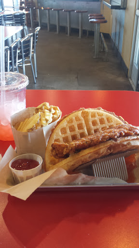 Waffle sandwiches such an amazing concept and mouth watering concept! This food spot is one of those places where youll want to try all of it! You cant go wrong and the weekly specials rotate all the time so you if you want to try something new youll always have the chance to! The seating is great! Its a very open space with both traditional seating and outdoor seating. Definitely comfort food!