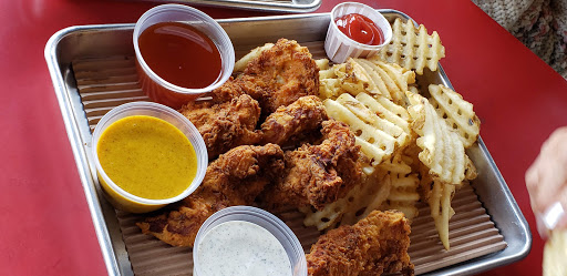 Fun food concept. Your usually trendy place to eat. Chicken is great but it gets drowned out by all the other things on the sandwich. Waffle fries are cooked to perfection just too salty. We even asked for a replacement order but it was also too salty. This place is family and pet friendly. The outdoor patio is great. The restaurant is nice and clean and the customer service is very good. I guess I would come back.