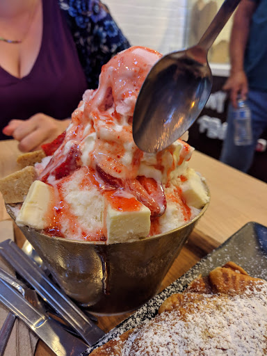 This place is unlike any other ice cream place that Ive been too. They serve and item called a bingsu which is sort of like shaved ice, but made out of milk. This will usually be topped with fruit for some of their topping. They also serve taiyaki there which my girlfriend loves.