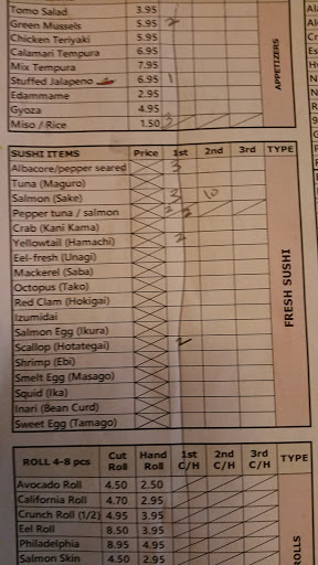 Just recently went there with some friends. Loved the food. We came right before the evening crowd hit and we were happy. Service was great. If you purchase so much you receive free rolls or appetizers. We like always were seriously loud and our "men boys" behaved like our kids. We had a great time and enjoyed wonderful sushi.