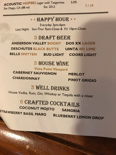Local hangout with unique gastropub menu. Duck fat popcorn is great and grilled cheese and tomato bisque combo a favorite. There are plenty of craft brews on tap, Claremont Jacaranda being my favorite, and Steve will make you a killer Old Fashion. Great place to watch football games. Needs more and better live music entertainment...
