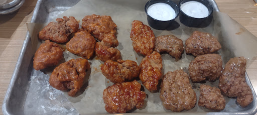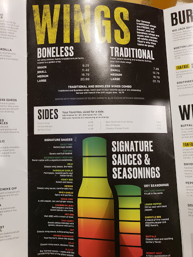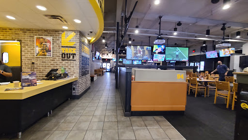My family and I love Buffalo Wild Wings now. We had been here once before, but years ago. We didnt really like it, so we never came back. But one day, we gave it another shot due to convenience (open late). Honestly, the food was about the same, but what really sold us was our server, Elizabeth. Her bubbly personality & product knowledge were a couple of the only reasons we decided to come back. Now we go to BWW 3-4 times a month. We might have a small problem... But its nice having a server who knows whats what! Youd be surprised how many servers elsewhere know less than the ad with a font size of 72 right in front of their face.
