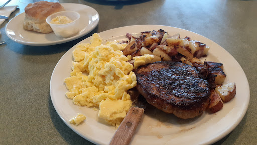 I live down the street and pass this resturant everyday. Im always wondering about their food. Im glad I came because now I know to never come here again. My grievances are more about personal taste. I ordered a Ranchers skillet. It came on a plate. I expected a skillet but again personal taste. The eggs were flavorless but a little salt and pepper fixed that. The bacon wasnt crispy but again personal taste. And the biscuit was really dry. No amount of butter or jam was helping. On the positive the wait staff were on their game and were really nice!