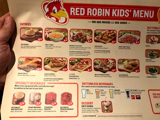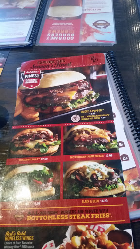 Just left red robin 1st the red chairs are dumb they lean back and everyone passing hits the chair most of the time it was the guy that cleans the table. Next the top of the table rocked, not the floor was missing screws to hold top. real nice ah ah ah !!! The food was ok could use more chili on burger. Wife ordered burger and add a side salad. Got burger go there were is the fries??? will be a long till I will go back.