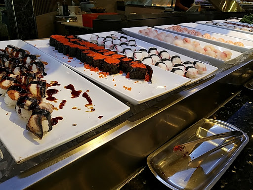 The sushi bar is excellent with plenty of variety! Easily my favorite thing here. The staff was very friendly and our table was visited frequently to offer us refills and to take away used plates.