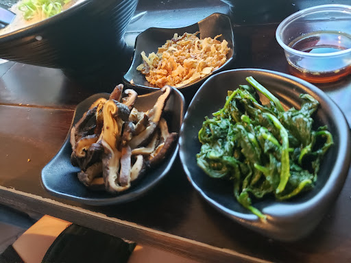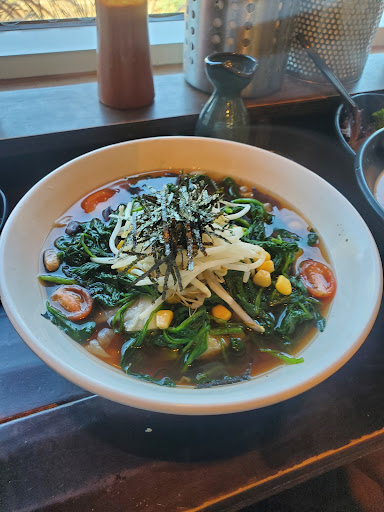 Broth and Noodle is good.. veggie is blend it just seems they boil it and just threw on top of Ramen instead boiling it together with the Ramen. Staff are friendly and helpful. Restaurants are clean and modern. Not a good place with young children because their dining is all bar seating settings