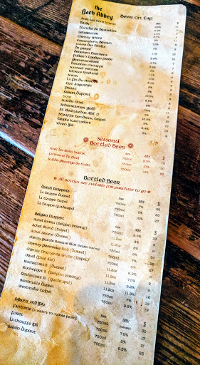 A certified beer nut myself I had heard rumors of a small but extremely well done gastropub in the Claremont area. I can say after my visit this afternoon that the pub our area so desperately needed has arrived. One glance of the beer selections shows you that you are in elite company. The whos who of Belgian beers is featured both on tap and in bottles. Dont be hung up on price... the selection ranges from $6 p/glass to $24 p/bottle, but with this price tag you enjoy your chosen brew in the appropriate glass poured to perfection. Pairing the beers with a small but excellent selection of gourmet burgers and smoked meats is a stroke of genius. The Back Abbey Burger is not to be missed... worth every penny of the $13 it is hands down the best hamburger I have ever eaten. The staff was professional yet personal... striking up conversations and cracking jokes whenever the opportunity arose. I was even lucky enough to have one of the owners come over and talk beer with me for a little while. Its obvious in the attitude of the staff and the owner that this isnt just about the money, but a real love of food and beer. Its refreshing to see a local place treat beer to the same elevated serving as a fine wine rather than the frat house mass guzzling of suds that beer is often associated with. I highly recommend the Back Abbey to anyone who loves beer, good food, and a casual welcoming atmosphere. For those contemplating a trip to L.A. for beer and food at Fathers Office... skip it... the Back Abbey offers as good, if not better, food and atmosphere for the money.