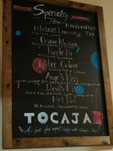 Fusion drinks and good green tea. Some small eats (sandwiches, etc). Independently owned. clean bathroom. Can be warm on warmer days. They dont use AC.