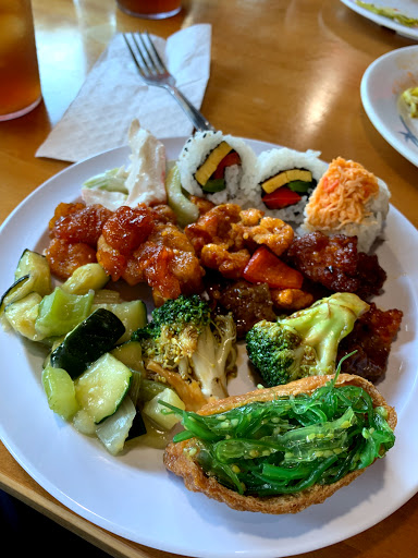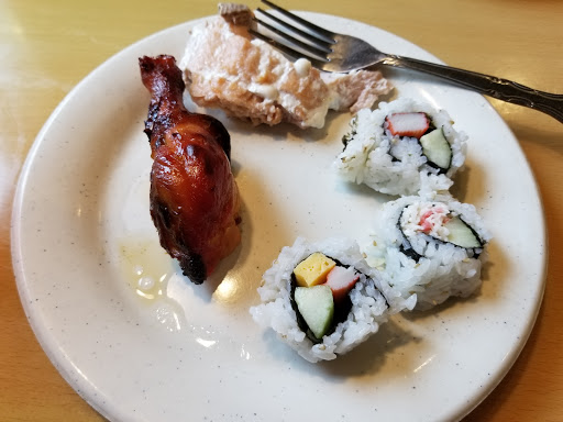 The service was okay, but some trays were at room temperature. The fried rice was almost cold. One fish stick was fine, and then another had an array of 12+ bones in it. The broccoli beef seemed to have much more broccoli than beef. I avoid sushi so no comment there. No ice cream, just the usual buttered butterfly cookies and bite-size chocolate square cake deserts that all Chinese restaurants have here. There was a nice battered shrimp and tender white fish, but the overall effort put into the food just felt low/inconsistent. Maybe a Friday night would be better than this Tuesday late afternoon.