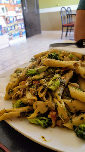 Ive eaten here a few times and very good food. I rated so low because I had come in one time to pick up and eat my order and the lady who makes the pizzas (including mine).... was not sanitary. I thought she was making herself a lunch, which gross, but it was hers so not my business-turns out it was for somebody else. NOT OKAY. Completely turned me off from the whole place, as good as the food is. If you dont mind people licking their fingers, picking their nose, scratching their hair whilst making your food, highly recommended, otherwise I DO NOT RECOMMEND.