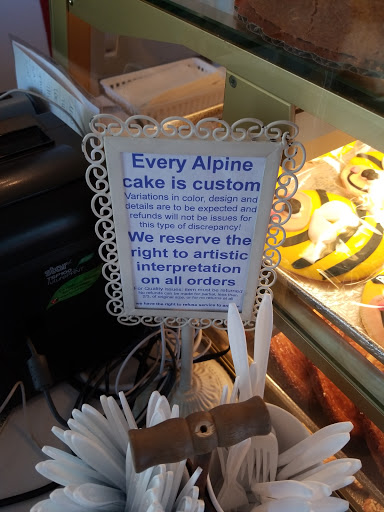 Alpine bakery did my wedding cake for 5/17/14. The ONLY thing that I would recomend to anyone ordering a wedding cake is to definitely know what you want when you order, try to avoid a busy day (go before 4:30pm during the week) and I would recomend calling ahead of time and finding out when they have their cake specialists working so that you can go during those hours to order your wedding cake. Not everyone there is a cake specialist which I totally understand, and if they are very busy they very nicely let you know when is a better time to come back to make your cake order so that way they can ensure to fully understand how you want your cake and so they can get your order correct. However, our wedding cake was EXACTLY what my husband and I wanted. Unfortunately I dont have a picture of my own cake yet or I would show it. It was a three tier buttercream cake with the bottom tiers having a curtain design in lavender, I had a light colored fondant bow on the 2nd tier, and the top tier had the love verse written on it in lavender with a precious moments cake topper. It was perfect. we had vanilla cake with vanilla custord filling for the top and bottom tier. It was SO good. We had the middle tier red velvelt which people loved. Everyone complimented the cake for how it looked and for how good it tasted.The pricing is resonable, even though I got a fondant bow, the lady who took my cake order ( I believe her name is Gigi, someone please correct me if Im wrong) worked with me as far as pricing and helped recomend what helps make the cake look good and taste good. She is SO sweet, just as everyone who works there. They are all so helpful and sweet. I would definitely recomend them for a cake for any occasion. Also, their princess cakes are VERY good