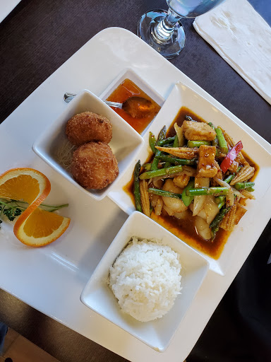 Food is good but service is horrible. Would only consider take out. Ordered Basil Chicken which was supposed to be spicy but came mild. Had a hard time getting my servers attention and eventually got another server that barely spoke English and she told me they have 5 levels of spiciness that my server failed to mention. When new dishes are brought out. instead of removing the finished dishes, they just push the empty plates aside with the new dishes and we had to pick up the empty dishes and hand it to them to keep them from falling off the small tabletop. When we asked to have the dishes we couldnt finished to be boxed, our server took my wifes Pad Thai and my Basil Chicken but left my brown rice I had ordered with the chicken and came back with the Pad Thai and chicken boxed and I had to ask him to take the rice too to box it. Horrible service, just horrible.