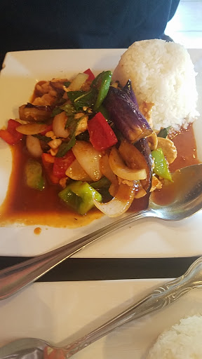Excellent meal tonight. The green curry grilled salmon dish and Tom ka soup were delicious and seasoned well without being in-your-face spicy. The wait staff are very friendly. Because one of the reviewers commented on how long it took for his food to be ready, I couldnt help notice all the take-out orders. Six separate customers came in and their food was waiting when they arrived. None had to wait. They were all happy. The only reason for 4 stars, not 5, is that the television ruined the lovely ambiance of the dining room.