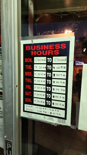 | Working: | Closed 11:30AM–9PM 11:30AM–9PM 11:30AM–9PM 11:30AM–9PM 11:30AM–9PM 11:30AM–9PM |