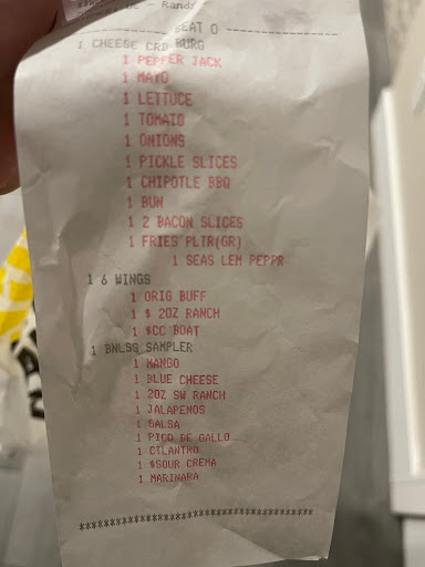 The WORST Buffalo Wild Wings I have ever visited the wings we ordered literally the most disgusting hard cold wings Ive ever received... I brought my sister here she has never been too a buffalo wild wings and I felt so embarrassed I apologized to her that I vouched for it... My boyfriend enjoyed his burger but the WINGS SUCKED HORRIBLY. Waste of money very disappointed.