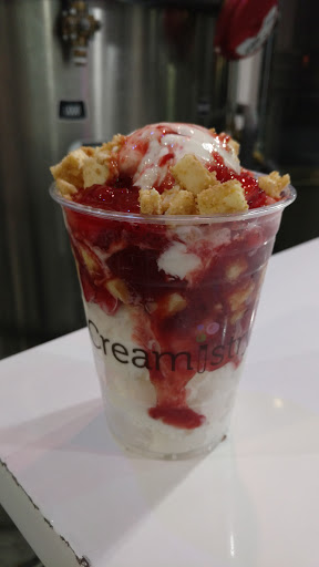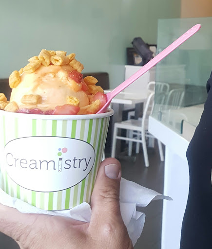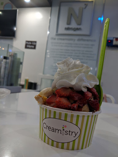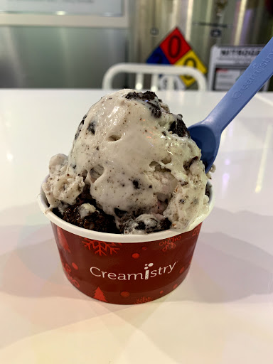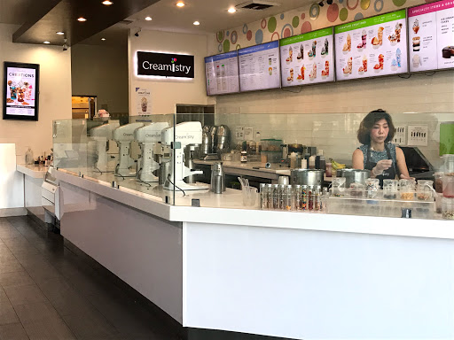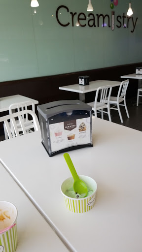 I really like this place! Before I begin my review, yes you can get Thrifty or Baskin-Robbins or Cold Stone Creamery for a lot less than what you pay at Creamistry. However, going to one of those places for ice cream is like going to Dennys or Fridays for steak when there is a Flemings Steakhouse or Ruths Chris Steakhouse in the area. The cheaper places simply arent as good as the premium restaurants. Okay then, on to the rest of the review! When you walk in the first thing you notice is that its absolutely spotless. The floor, the counters, the walls, even the big nitrogen tank is perfectly clean. Then the employees greet you. Its a wonderful first experience. Then you see the ice cream machines emitting clouds of nitrogen. The handles of those things become covered with frost. Again, everything is spotless. Clean. Ordering is interesting. You select a cream base, then add flavor and toppings/mixins. It takes a couple minutes for the creamologists to put together each order. The wait is well worth it. Why? Because the result is a dense, silky smooth ice cream that is hard to match. Ive had ice cream and gelato all over the US and Europe, and this is definitely one of our top picks. Unlike the bland, too much dairy-fat taste of Cold Stone Creamery, the flavorings really get to shine. They have a really nice selection, including a really interesting tasting black sesame flavor. Another nice thing is the dedication and enthusiasm of the staff. It really sets the mood and expectations, which is something that was absolutely delivered. Yes, there are those who complain about the sticker price (About $7/person). I believe the service, cleanliness, and premium ingredients are well worth what we were charged. Also, a small portion at Creamistry is like a medium portion at Thrifty or Baskin-Robbins or Cold Stone Creamery.