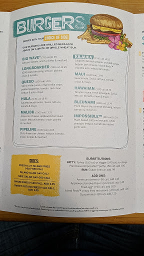 I personally love burgers. So to say that Islands was a disappointment is hard to type but they make really dry burgers. I ordered my burger medium rare and got a medium well done patty. No pink. I asked if they make medium rare and the waitress said no they only do medium. Ok, so why wasnt I told that when I ordered my burger med rare? I wouldnt have ordered a burger, which is disappointing because its a burger place. Plus my burger was med well with no pink and not medium with pink throughout like she claimed. She did offer to have them remake it but to make another dry burger was a no go for me, so had to order the good old trusty dont know the restaurant food order chicken strips route. So to say the least Islands was a total let down. I did give it 3 stars for the fries and the chicken strips. The tuna is good too on egg bread. Staff was ok. Nice but not too informative upfront, at least not my waitress.