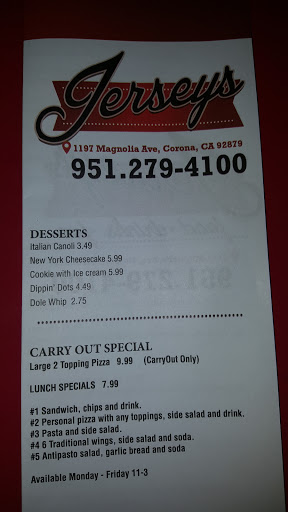 BEST PIZZA around. ALL my friends & family agree. Always consistent, clean & reasonable. I never liked chicken wings, but they make the BEST. Their Fried Zucchini & Pastrami Sandwich are also very tasty, but, the pastrami could use more meat. I look forward to trying more items on the menu. Porkys was once my favorite, but Jerseys wins, no comparison! And no, I wasnt paid, I just love their pizza.