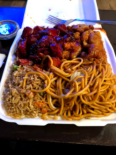 We ordered 4 servings of orange chicken and chow mein. Their potions are huge for fairly cheap, but the quality of food is very poor. There were about 6 pieces total of chicken that actually had chicken in it that could be tasted. The rest were heavily breaded and fried so hard we had to pull hard to bite into the pieces. We each had a pile of spit out chicken on our plates, which was gross. Luckily we were at home, to do so. The chow mein had a sweet taste too. I was so disappointed as I was looking for somewhere new to eat, but I will not go back again. I will continue to eat at Pick Up Stix as I know I am getting chicken of high quality.