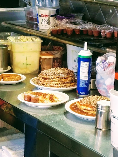 I took my sister out for breakfast here on Christmas Eve and it was one of the worst dining experiences that Ive ever had. The table wasnt clean when we were seated, the condiments werent filled and available, and the table "cloth" (paper with glass over it) was EXTREMELY distracting with all of the ads printed on it. The service was fair; the waitress came by once or twice to check on us, and we did have a busboy come by offering us a refill on coffee. The food was terrible in the most extreme sense of the word; even as Im typing this review, my sister and I are terribly sick to our stomachs from the Manhattan Pancakes (I think they used old, expired sour cream). The food was cold, the bacon was WAY over-cooked, and the water for the tea that I ordered was bath-warm. Overall, it was just a sad experience and one of the worst $20 Ive ever spent. I do not suggest going to this diner. I wish I would have been able to leave a good review, but that simply was not the case today.