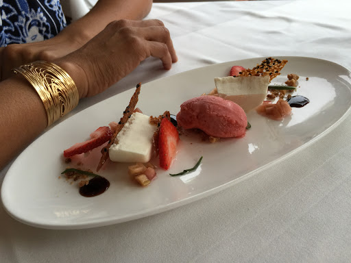 Je suis assez difficile sur la nourriture. Ce restaurant proposé des ingrédients de grandes qualités et une très bonne maîtrise des techniques culinaires. Jai pris un filet de bœuf, la était cuisson parfaite, le jus excellent. En accompagnement, un risotto à la truffe, le risotto était crémeux la truffe bien équilibrée avec le parmesan. Lentrée Lunguine à lencre de seiche et crabe, formidable, la chaire de crabe était assaisonnée avec une émulsion de moutarde et dherbes. Service impeccable, écrin délicat. Les tarifs sont assez bien adaptés au lieu et à la qualité, entre 30 et 50 dollars le plat.