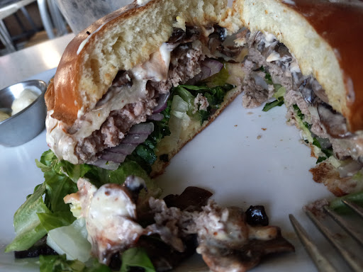I call this place, "Build your own burger." If youre in the mood for a burger (and you want more than in-n-out), this is the place. Angus beef, antibiotic and hormone-free, tuna, chicken, turkey, veggie... On a bun (one of many kinds) or as part of a big salad (the backyard BBQ salad is great), you can choose every detail of your order using a checklist down to the kind of meat, including turkey, chicken, bison and veggie. If you dont want meat, you can even "build your own grilled cheese" The fries (both sweet potato and regular), and onion strings are excellent! The portions are large (I always have something to take home), the servers are always pleasant, and for what you get, the prices are reasonable. There are a lot of places selling $14 burgers that are wimpy and dried out--heres theyre great and start at $11, with other sandwiches starting at $7. This is a great go-to place when youre really hungry and want something substantial--and GOOD! I just wish they were open later, as they close at 9 on weekdays, 10 on Friday/Saturday. GO--ITS GOOD.