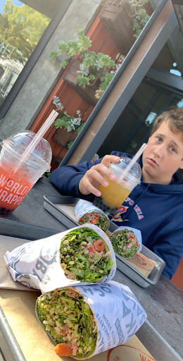 I love this place, my wife and I go there often. They have great, healthy lunches, theyre fast, and theyre inexpensive. Theyll give you many variations in the menu, e.g. try a wrap as a salad by substituting a bowl for a tortilla and lettuce for the rice. And dont miss the peanut butter banana smoothie!