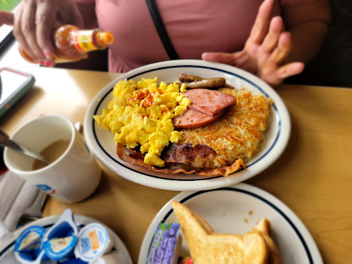 I work in the same area that this IHOP is located. I am a shift manager for a fast food restaurant down the street, and after a long graveyard shift I like to treat my coworkers and always take them here. Ive been coming to this location for a year now. One morning in particular we show and we are greeted and seated by the host. When our waitress shows up with our drinks she literally threw the coffee cups on the table and asks if we are ready we tell her we need a couple minutes. She leaves and we look over the menu having a few laughs. We literally wait for 30 min before we decide to get up and leave. As we walk out she then says have a good day in a very mocking tone. My coworker goes and asks why she didnt take our order. She lets know that she has the right to refuse us service. Okay when asked why she would refuse us service she said because we were laughing. Okay first of all it is a family restaurant we go there to enjoy a meal among and have a couple laughs. We werent making fun of them or even talking about until we decided to leave. She was just plain out rude and honestly she made me feel like never coming back to this location. I rather go to the Dennys down the street.