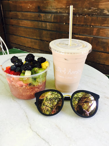 Came here looking for dessert, so I got the Milk & Honey special which was made of strawberry yogurt, shaved ice, strawberries, bananas, kiwi, mochi, and red bean. The special was pretty good, cant really go wrong with fruit and red bean, but the ice was really bad. Im used to extremely soft snow, which was what I was expecting, but that is not the case here. Even so, you would expect it to be like snow cone ice, but it wasnt. Parts of the shaved ice clumped together and didnt really make it that fun to eat. Everything else, however, was good. The store is rather tiny, not really much to sit, but it does have a very cute hipster aesthetic. I cant really say much about the coffee since Im not much of a coffee person, but if you are, I would give this place a try. Note: If you check-in on Yelp, you get 5% off your order.