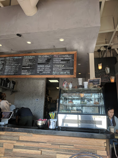 Im a fan! Unknowingly, I came here for a late night cup of joe years before and stumbled upon it again at the CAMP. Besides the organic feel of this place, they offer: Yogurt (parfait with fruits and granola), shaved ice, blended drinks, coffee (organic), tea, bagels, sandwiches, waffles. The feel of this place is quite relaxing with their lovely outdoor patio surrounded by vines, its a piece of art...too bad theres no heat lamp. The seating is limited, but most folks get everything to-go. Green Tea Latte: smooth and creamy with the perfect amount of sweetness. The best one I had by far, 5 stars! Bonus: almond milk available Plenty of Parking...its near the Chevron!