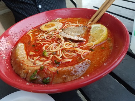 Good food. Always packed here, it seems (or maybe the dark walls just make it seem more crowded than it is). Loses one negligible star from me only because their spiciest broth really isnt spicy at all, at least, by my standards (Ive had ghost pepper sauces without flinching). If you want really good ramen and truly spicy soup, try the ramen place (I forget the name) inside the Tokyo Central grocery store at the corner of Harbor & Adams.