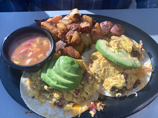 Decided to have brunch here. This place does get pretty busy on a Sat afternoon. But there are places to sit outside as well. You order first, then pick a seat. Got the breakfast tacos. They were as good as it looks in the pictures. I live how they have the avocado on top. You cant really eat it like a normal taco since theres so much stuff in it. Dont let the size fool you. You will definitely get full off of it.