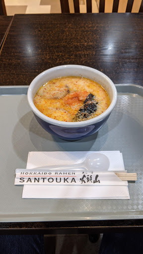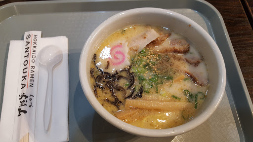 Delicious Ramen! Ever since I watched the movie Tampoco, a Japanese movie about a girl learning to make perfect ramen, a few years ago I always wanted to try Ramen. I have tried many other places, but after trying Santouka I am hooked. Located in the Mitsuwa food court, there are a lot of different types of Japanese food. I want to try some curry and other Japanese dishes, but instead Ramen is always my meal of choice when in the area. I highly recommend the Miso Ramen. I tried the spicy Miso Ramen, but it wasnt as good as I thought it would be for about a dollar more. Make sure to bring cash. Thank you Santouka for having the best Ramen I have ever tasted. When you first walk in the Mituswa market food court you will notice one thing a big line at Santouka Ramen. This place is for real real not for play play. If you look throw the endless pictures posted by various yelp users this place is no joke. You can choose between Salt, Pork, and Miso based broths. I have only tried Salt and Miso. Salt was bit too salty for me, it reminded of me when I drank a gulp full of salt water my first time snorkeling in Hawaii. Miso Ramen has a delicious taste of pork flavor and traditional miso soup. I was fascinated by the neat and precise the ramen presentation. It really does look exactly like the fact Ramen displays. I admit that Ramen is not the best food for big eaters, but thats normal for Japanese food. Everything Japanese seems to be neat cute and small.. pretty much the opposite of American dishes. Even when I order a large Ramen I usually add a side of Sushi from the Mituswa market or a plate of tonkatsu curry from a neighboring restaurant. I tried Udon and bento boxes from the other restaurants, but they were nothing spectacular. I highly recommend going in to the market to pick up boxes of sushi and then have a side of Ramen to go with it. The market takes credit card and Santouka doesnt, my only con. My best advice is to visit Santouka during off peak times if you can. If you hit the dinner or lunch rush you may wait anywhere from 15-45 minutes for you Ramen. Try to go an hour before or after the peak time. Not during 12-1:30pm or 6-7pm. Also, you will learn the hard way that there is no parking during peak and you will only see cars driving is circles trying to find parking. To avoid stalking leaving customers go when it is less busy. I have only gone on weekends but I would imagine weekdays are off peak. So LETS GET SOME RAMEN! Cheers! with green tea of course there is no alcohol allowed in the food court.