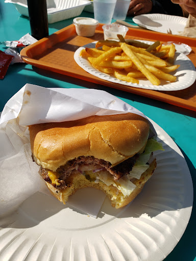 Affordable and tasty burgers with a slight char to the burger patty make this place pretty bomb. It was my first time here and Ill be back. It has a surf/tiki type feel to it which I dug. They have outdoor seating for you and your pooch too. A cheeseburger and fries was like $6.75 so its reasonably priced compared to other spots like this. Definitely worth checking out.