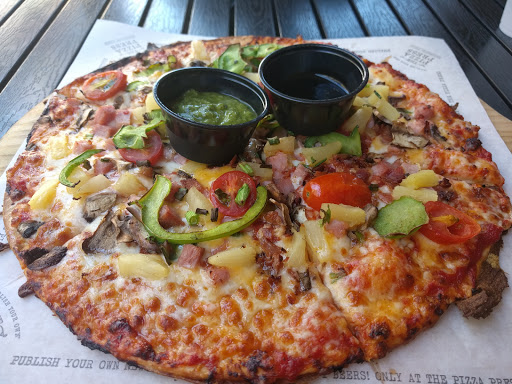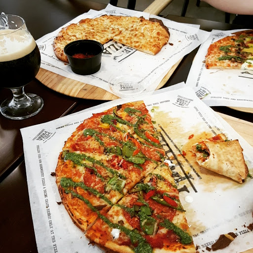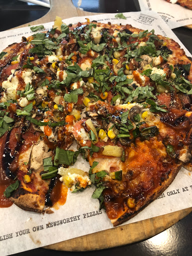 This is a great make-your-own pizza place. Its like Pieology, but what makes this place way better is that the pizza is actually well cooked. The problem Ive always encountered with Pieology is that is always undercooked, the dough is still soft. Here, its actually run through the oven with more time, and the ingredients are way better. Also you can add more ingredients and sauces after its cooked for more flavor since some things taste better not cooked like cilantro. They also serve alcohol and and there desserts taste pretty good. Im glad theres a place like this close by and is way better than Pieology