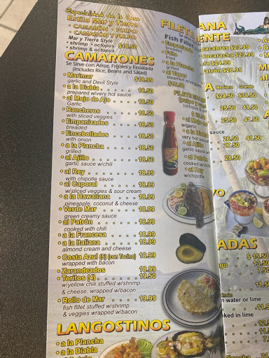 This place food is horrible. I got the camarones al rey. Theyre in a nasty chipotle cream, it looked like throwup and tasted old. My husband got the camarones cabron botana also gross and tasted as if they were from days before. We both got a stomac ache.
