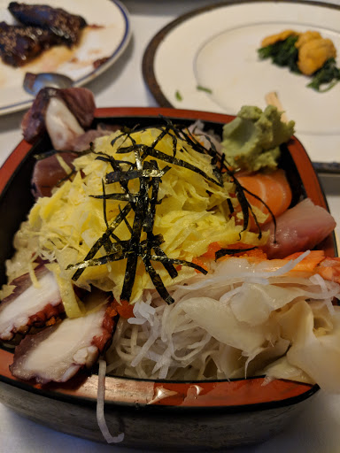 OMG! The chirashi sushi is the best I have ever had. Real authentic Japanese food. The waitress and hostess are very friendly and the food is to die for. This is the place to come if you want REAL Japanese food. The chirashi sushi has TWO layers of variety of fish! Everyone else only puts one but this place just piles it high! Beautiful, flavorful fish...not just tuna and salmon but everything.. halibut, yellow tail, shrimp, marinated mackerel, and more. I always go for the lunch special which includes miso soup and amuze-buche.